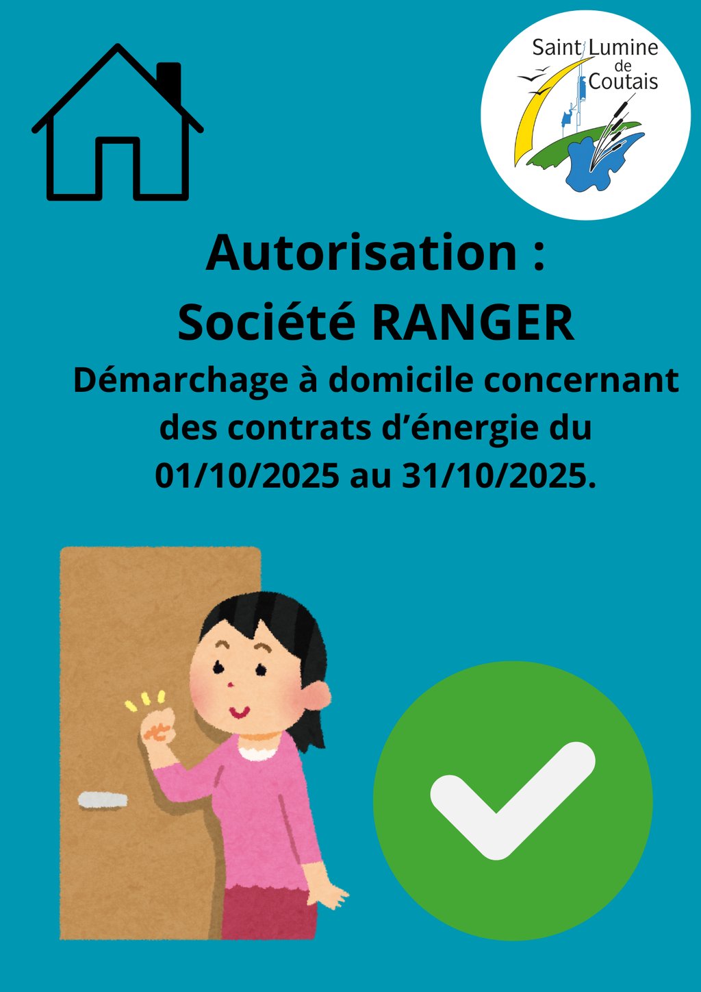 Les équipes de vendeurs de RANGER vont réaliser une campagne de démarchage dans notre commune, Saint-Lumine-de-Coutais (Insee 44174) du 01/10/2025 au 31/10/2025.