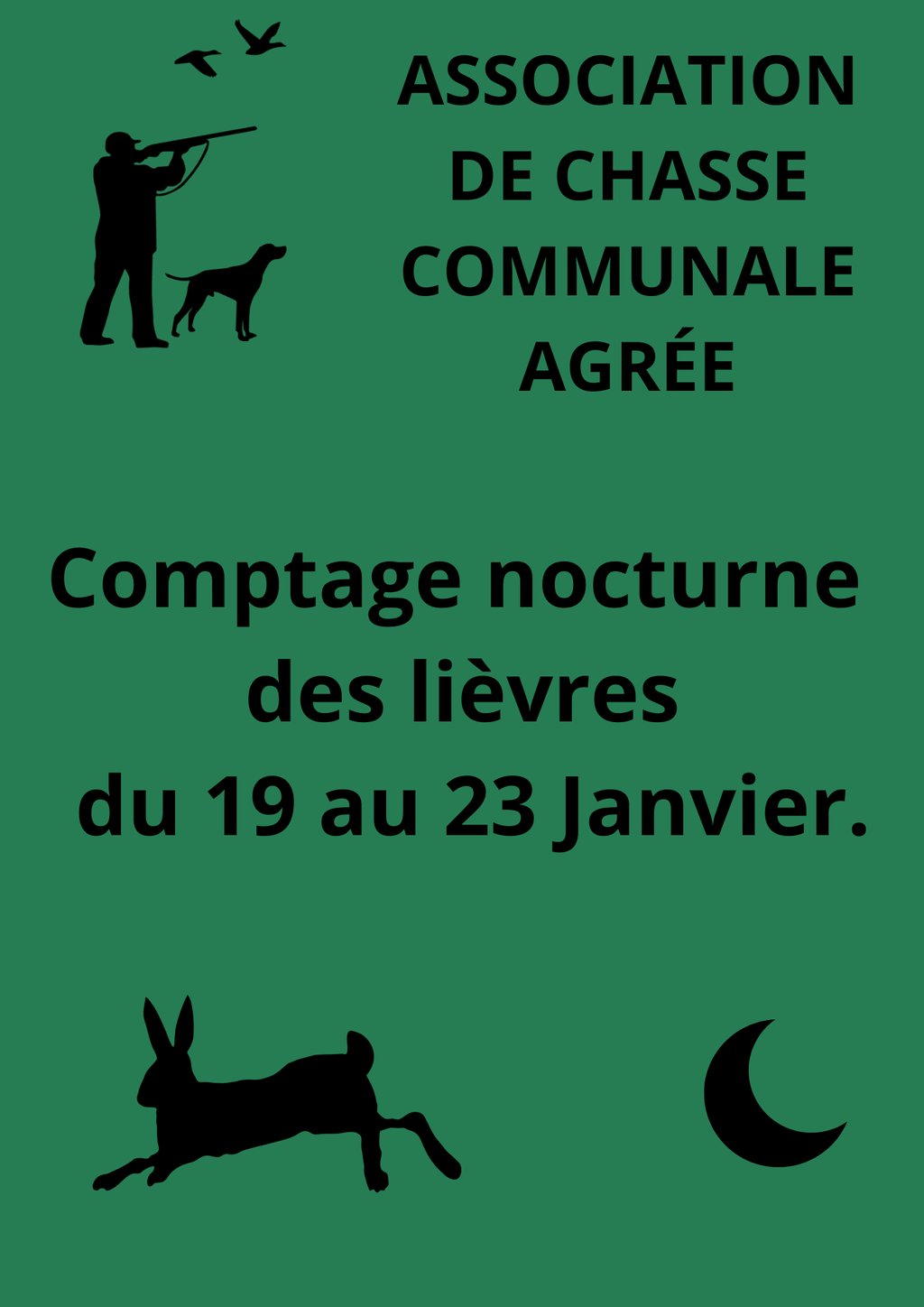 L'Association de Chasse Communale Agrée organise un comptage nocturne des lièvres la semaine du 19 au 23 janvier 2026.