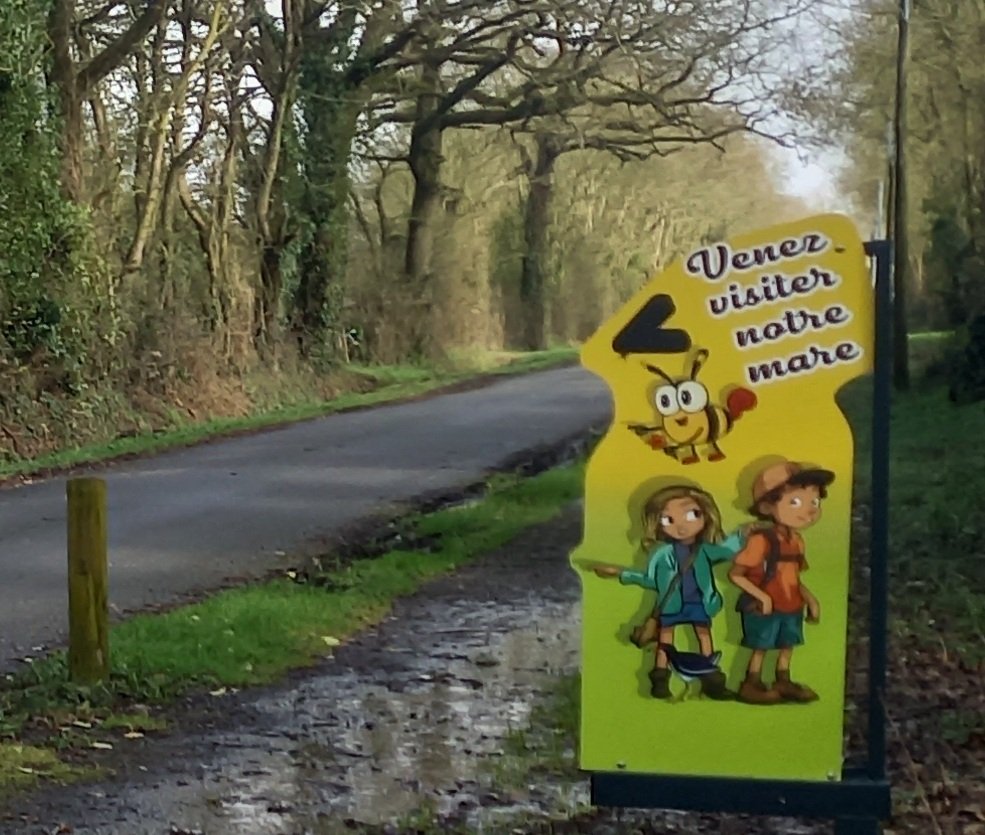 La mare pédagogique, située rue du Stade, est dotée d'une signalétique avec notre mascotte de la biodiversité dessinée par les enfants de nos écoles