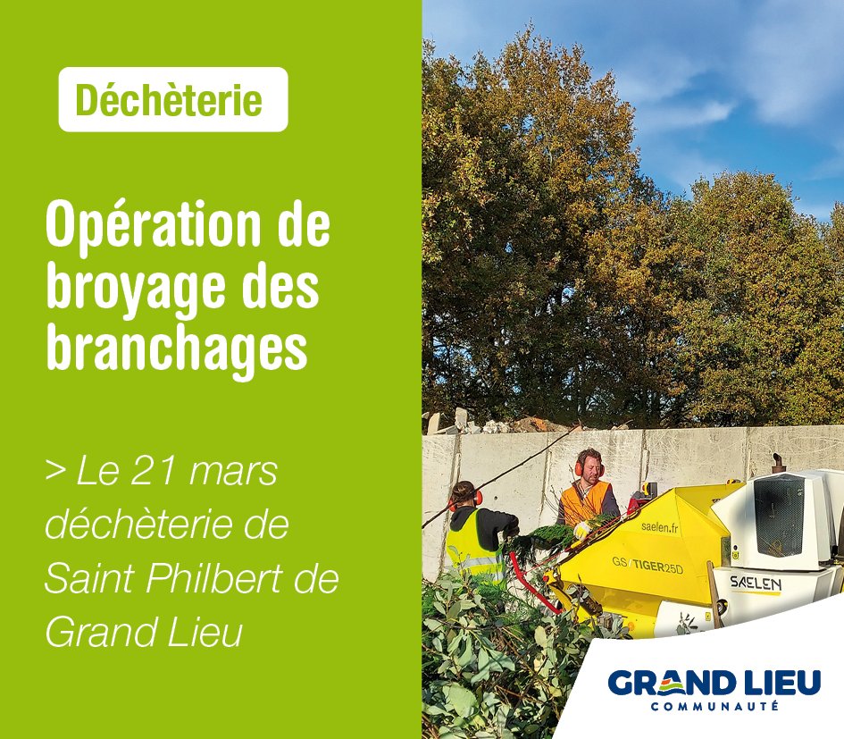Grand Lieu Communauté agit concrètement en faveur de la réduction des déchets sur le territoire. Pour ce faire la collectivité organise depuis de nombreuses années, six opérations de broyage des branchages par an, avec trois sessions au printemps et trois à l’automne. Lors de ces opérations les habitants peuvent déposer leurs déchets verts sans que cela ne soit décompté de leur carte de déchèterie. Toutefois, si d’autres types de déchets sont apportés, un passage sera comptabilisé.