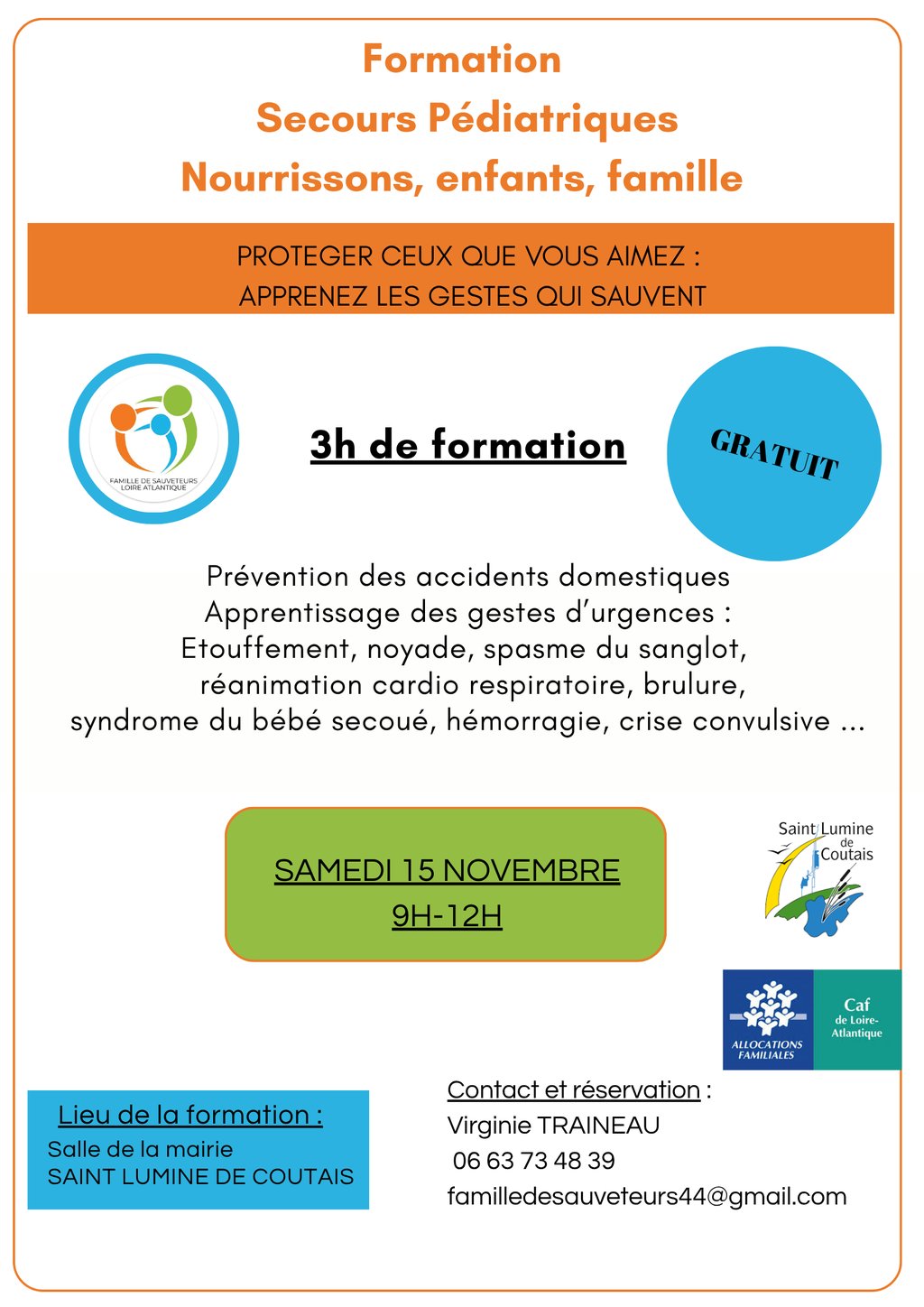 Formation de secourisme pour les futurs et jeunes parents, les grands parents, la famille ...adaptée aux nourrissons, aux enfants et à toute la famille