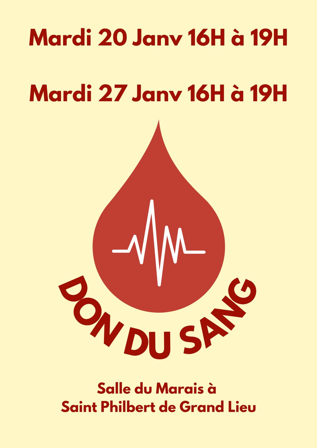 Mardi 27 Janvier de 16H à 19H