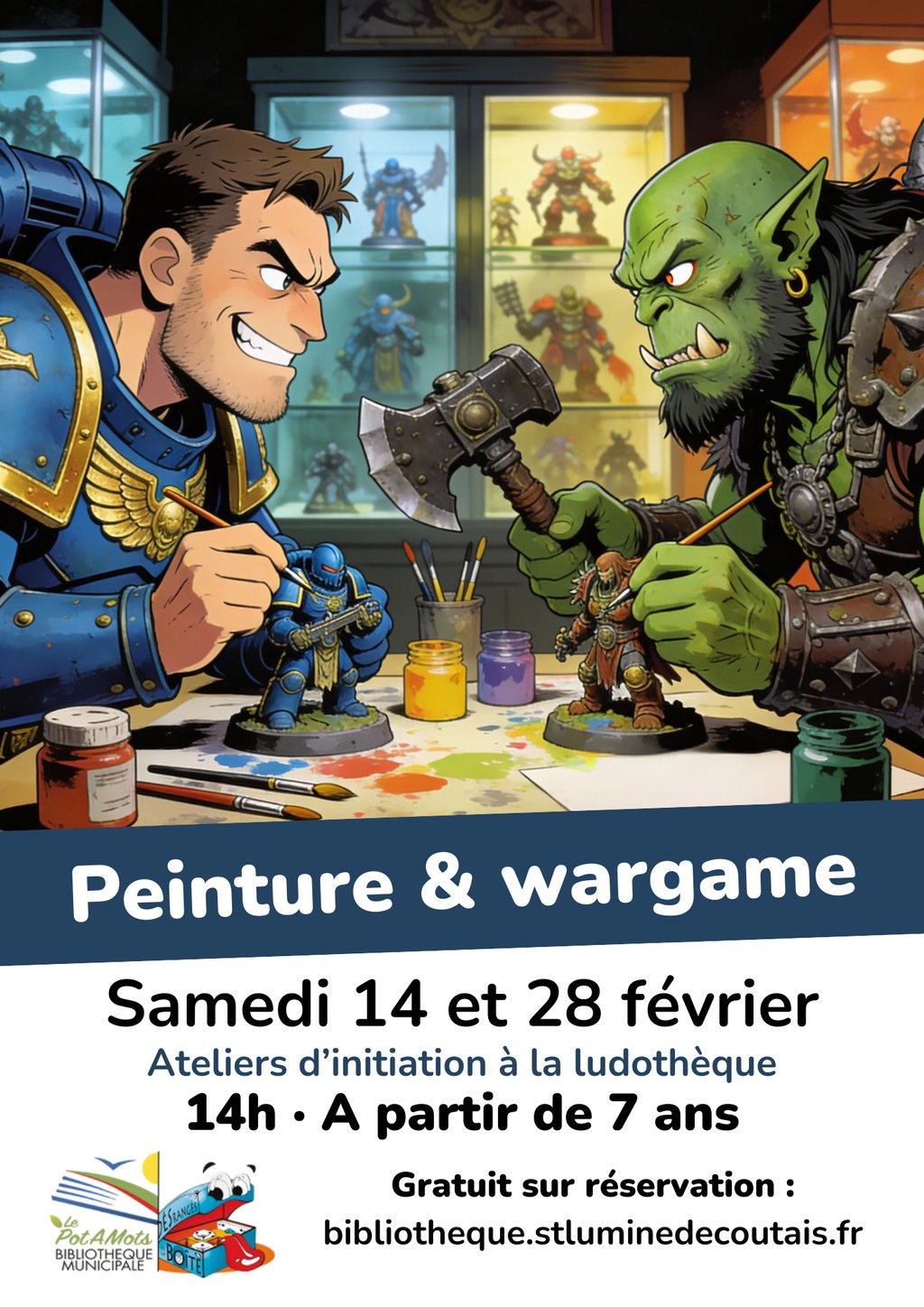 La bibliothèque municipale et la ludothèque des Dés Rangés de la Boîte s'associent pour vous proposer un atelier de peinture et wargame, en partenariat avec Warhammer Alliance ! ⚒️🎨🖌️